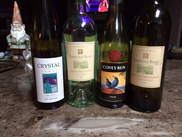 Crystal Range Riesling ~ Tarkettle Road Sauv Blanc ~ Covey Run Syrah ~ Tarkettle Road Cab