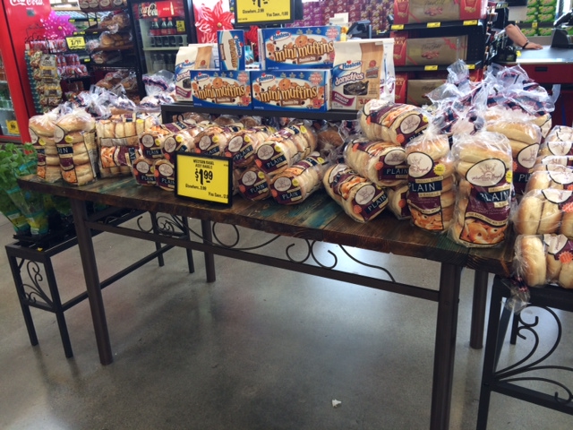 Larry tore down his old shed and it lives on in this new display table. You can see it up close in the store proudly displaying a new line of fancy baked goods… hashtagamazing