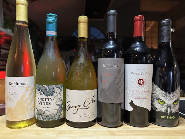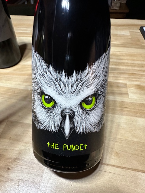 Becky tasted oak right away in this California Chardonnay. And, a hint of peach? Russ found it smoky and Connie thought this Chard had a bit of a bite to it but I think I had it too chilled. This is a heavier Chardonnay and should’ve been served at room temperature. Becky warmed hers with her hands and it made all the difference. It pairs well with the buttery crackers, pop corn and even some plain potato chips.